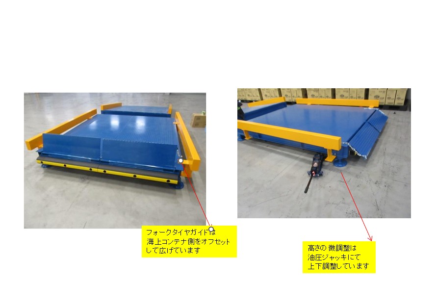 海上コンテナから荷物を平行で荷捌きできる商品となります。